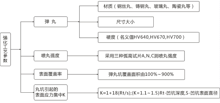 噴丸強化三要素分為:1、噴丸強化設備及其附件,2、介質:各種類型的彈丸,3、工藝:噴丸強化參數(shù)、與疲勞強度的關系;